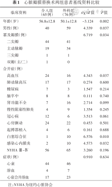 心脏瓣膜替换术两组患者基线资料比较