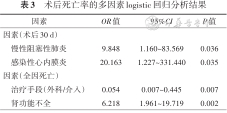 术后死亡率的多因素logistic回归分析结果