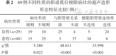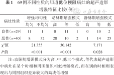 69例不同性质的胆道低位梗阻病灶的超声造影形态特征比较(例)