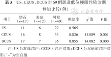 US、CEUS、DCUS对69例胆道低位梗阻性质诊断性能比较(例)