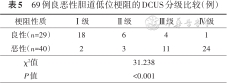 69例良恶性胆道低位梗阻的DCUS分级比较(例)
