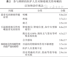 | 肺癌相关性咳嗽管理的最严重的障碍 | 目前的药物镇咳作用不够理想 | 3.7±1.6 |