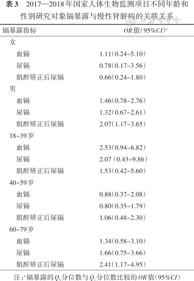 2017—2018年国家人体生物监测项目不同年龄和性别研究对象镉暴露与慢性肾脏病的关联关系