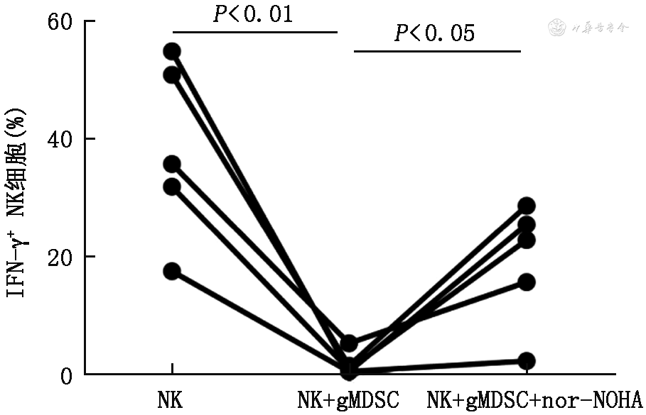 注:gMDSC为粒细胞样髓源抑制细胞;NK为自然杀伤细胞;nor-NOHA为arginase Ⅰ抑制剂;IFN-γ为γ干扰素