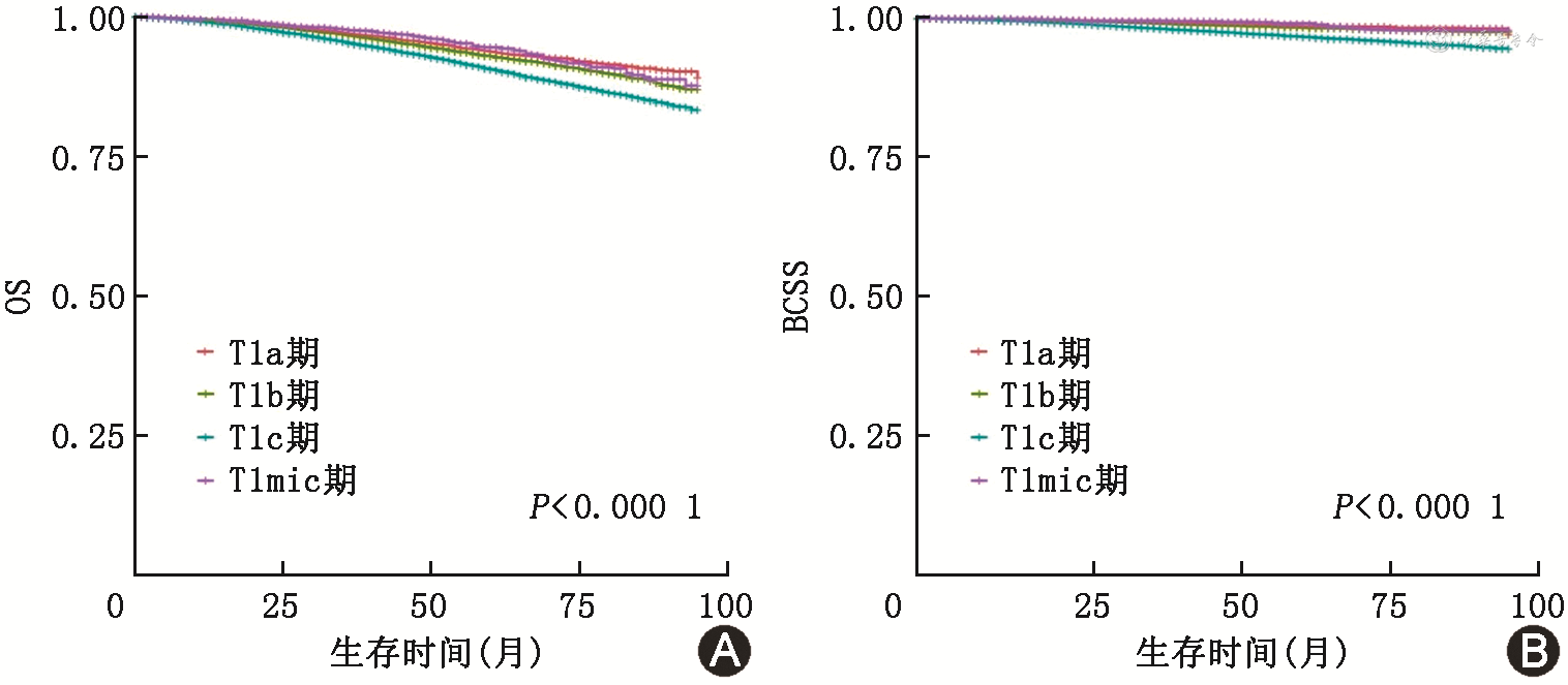 T1期乳腺癌女性患者总生存(OS)及乳腺癌特异性生存(BCSS)单因素分析