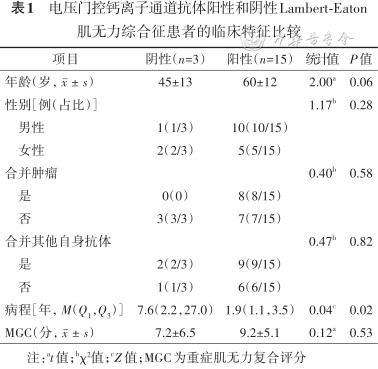 电压门控钙离子通道抗体阳性和阴性Lambert-Eaton肌无力综合征患者的临床特征比较
