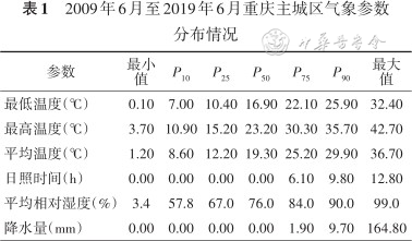 2009年6月至2019年6月重庆主城区气象参数分布情况