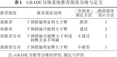 | 强推荐 | 干预措施明显利大于弊 | 推荐 | 1 |