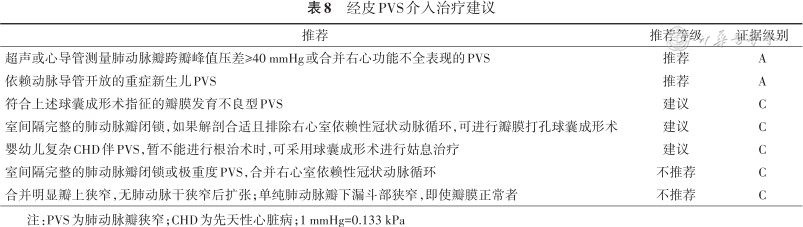 | 婴幼儿复杂CHD伴PVS,暂不能进行根治术时,可采用球囊成形术进行姑息治疗 | 建议 | C |