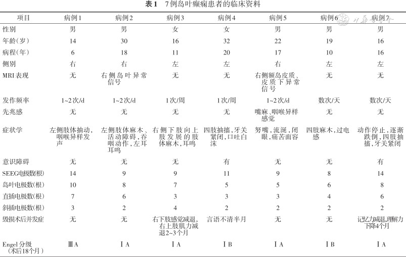 7例岛叶癫痫患者的临床资料