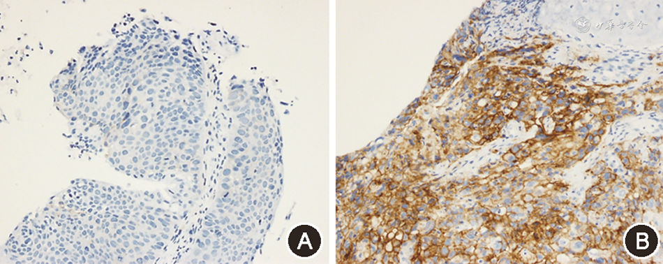 肿瘤细胞PD-L1和细胞毒性T细胞上的PD-1相互作用可导致肿瘤生长加速,而抗PD-L1抗体治疗或敲除移植瘤小鼠中的PD-1基因减缓肿瘤生长[23],这为针对PD-1/PD-L1通路ICIs的研发和应用提供理论基础。尤其是在转移性NSCLC中,PD-L1表达被用来筛选符合ICIs治疗的患者或用来判断患者的生存获益情况。在PD-L1表达≥50%的晚期NSCLC患者中,与接受含铂类化疗方案相比,采用帕博利珠单抗治疗的患者会有明显的生存获益[24, 25]。在KEYNOTE-042研究中,入组标准变为PD-L1表达≥1%的局部晚期或转移性NSCLC患者,与化疗方案相比,帕博利珠单抗治疗仍可使患者生存获益,并且PD-L1表达≥50%的患者获益更明显[26]。针对局部晚期不可手术的Ⅲ期NSCLC免疫治疗的研究中,PACIFIC研究设计并未纳入PD-L1表达情况,虽然结果显示,局部晚期不可手术NSCLC患者在接受同步放化疗后无PD的情况下,可获益于免疫巩固治疗[8, 9, 10];但也有研究显示,当PD-L1表达<1%时,与安慰剂组相比,度伐利尤单抗治疗并未给入组患者带来生存获益[12]。目前,在欧洲和日本也只批准在PD-L1表达≥1%的患者中使用度伐利尤单抗。因此,研究免疫治疗在不同PD-L1表达水平不可手术Ⅲ期NSCLC患者中的疗效,具有指导意义。本研究为回顾性研究,研究之时免疫治疗尚未开展,全组患者客观缓解7例,疾病控制14例,这与PROCLAIM研究相似,甚至略高[27]。Vrankar等[18]在研究中分析PD-L1表达(SP142抗体,PD-L1界值为5%)与NSCLC患者客观缓解率的关系,结果显示,PD-L1阴性组的客观缓解率(79.3%)虽高于PD-L1阳性组(50.0%),但差异无统计学意义(P=0.200)。该研究整体疗效高于本研究,可能是因为Vrankar等[18]评估的是治疗后5个月的疗效,本研究只评估了同步放化疗后1个月的疗效,而放疗具有特殊的生物学效应,放疗后肿瘤在3个月甚至半年时还会持续缩小。