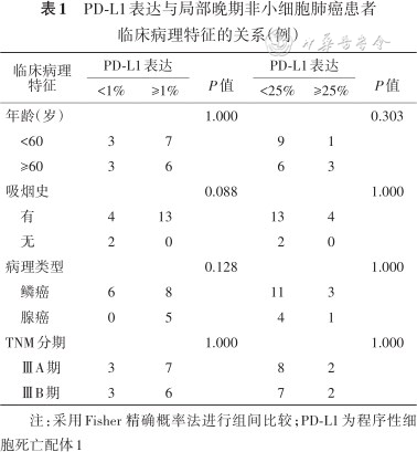 PD-L1表达与局部晚期非小细胞肺癌患者临床病理特征的关系(例)
