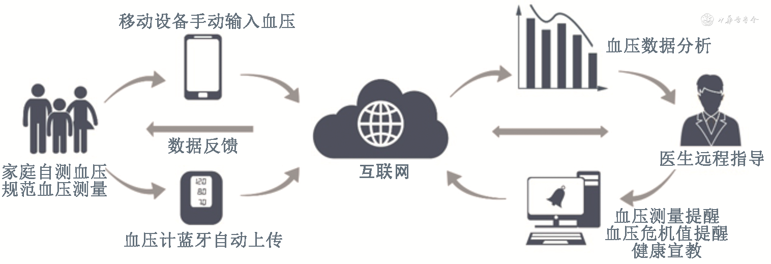 现行医疗模式下,患者-门诊-医生这种单一的诊室血压数据获取模式难以实现医生-患者之间“点对点”的追踪联系,因而这种现行的高血压管理服务模式难以满足高血压规范管理的需求,患者院外缺乏医生规范的指导,医院和家庭之间都是信息孤岛,难以实现精确和连续管理。