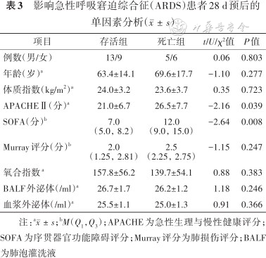 影响急性呼吸窘迫综合征(ARDS)患者28 d预后的单因素分析()