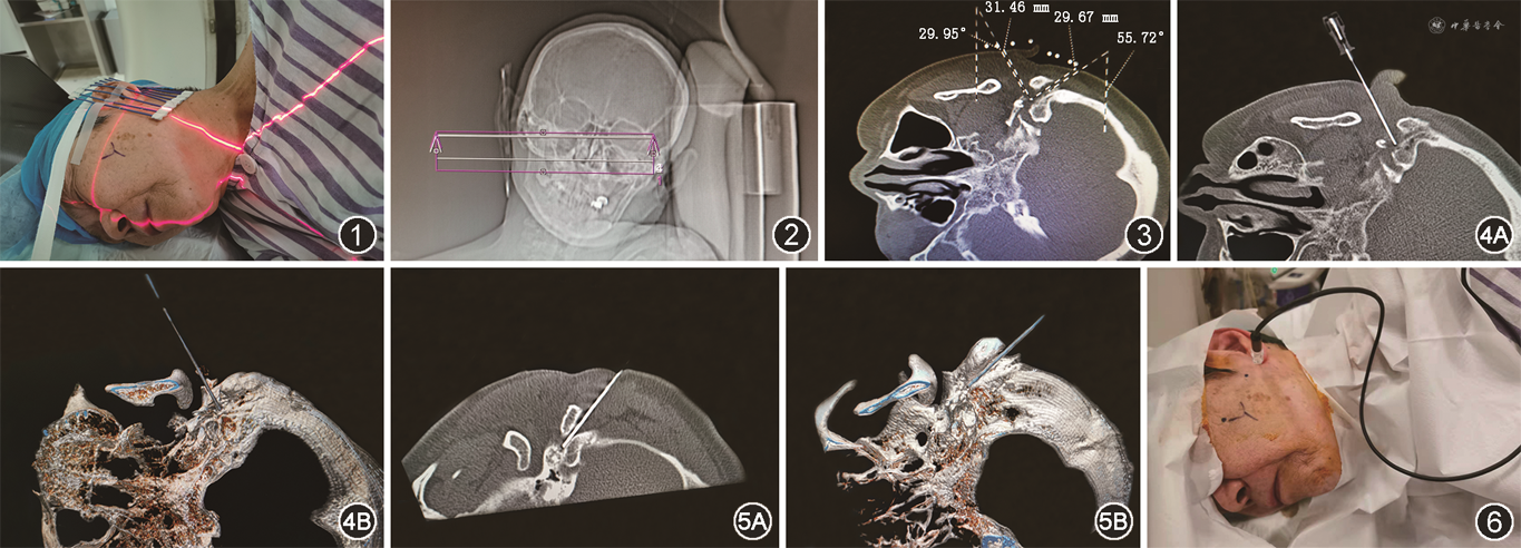 再次明确诊断与鉴别诊断,确认有射频治疗适应证,并排除射频治疗禁忌证。告知射频治疗面肌痉挛的优缺点及替代方案,并签署知情同意书。备好射频仪、监护仪、急救插管包及简易呼吸器,射频电极消毒备用。准备麻醉药物利多卡因、芬太尼及血管活性药物乌拉地尔、麻黄素、阿托品等,开放静脉输液通道后送CT手术室。
