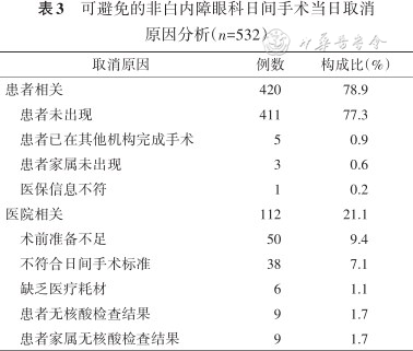 非白内障眼科日间手术当日取消率分析