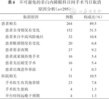不可避免的非白内障眼科日间手术当日取消原因分析(n=295)