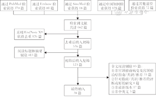 将检索到的所有文献导入EndNote X9软件进行管理,并按照系统综述和荟萃分析优先报告条目(Preferred Reporting Items for Systematic Reviews and Meta-Analyses,PRISMA)中的要求,绘制文献筛选流程图(图1)。经过文献去重,根据以下纳入排除标准阅读文题和摘要,由两名研究人员独立进行文献筛选,完成筛选后对意见不一致的文献进行核查讨论,必要时由第三名研究人员决断。