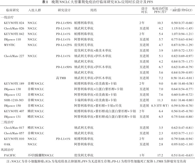晚期NSCLC大型Ⅲ期免疫治疗临床研究ICIs应用时长设计及PFS
