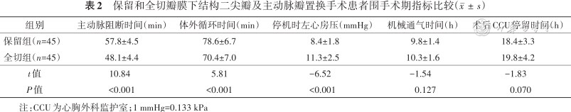 保留和全切瓣膜下结构二尖瓣及主动脉瓣置换手术患者围手术期指标比较()