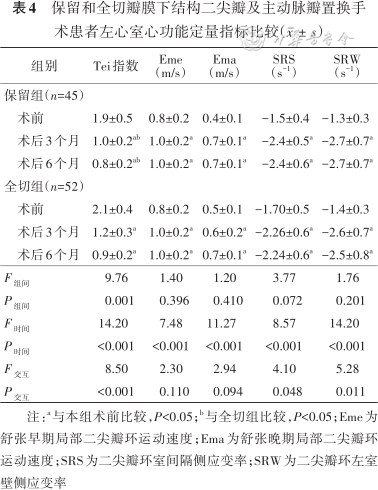 保留和全切瓣膜下结构二尖瓣及主动脉瓣置换手术患者左心室心功能定量指标比较()