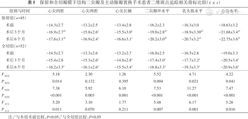 保留和全切瓣膜下结构二尖瓣及主动脉瓣置换手术患者二维斑点追踪相关指标比较()