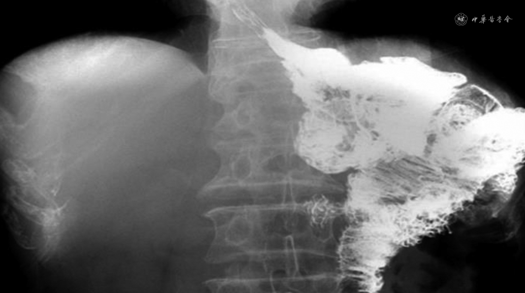 10例患者的临床资料见表1。10例患者均成功实施腹腔镜保留贲门胃癌根治术,无中转开腹,消化道重建时间20~30(24.8±3.3)min,术中出血量20~100(35±24)ml。术后排气时间2~3(2.5±0.9)d,术后进食流质饮食时间2~3(2.25±0.87)d,术后住院时间6~13(9.5±2.1)d。术后未发生出血、吻合口瘘或吻合口狭窄等手术相关并发症,根据外科并发症的Clavien-Dindo分级[7],Ⅰ级1例,无Ⅱ~Ⅴ级并发症。术后病理显示切除标本近远端切缘均阴性,第1组清扫淋巴结2~3枚,有1例患者阳性;第2组清扫淋巴结1~2枚,均阴性。患者术后随访时间分别是2~15个月,中位随访时间6个月,随访期间无死亡或肿瘤复发转移病例。术后患者无反流症状,术后1个月胃肠造影无反流征象(图3),术后2个月血红蛋白、白蛋白、前白蛋白、体质指数和总淋巴细胞计数均恢复至术前水平(表2)。与全胃切除和近端胃切除相比,保留贲门功能胃癌根治术理论上能降低反流性食管炎发生率。采用手工缝合法进行消化道重建,可以减少2~3个吻合器枪钉的应用,降低了手术材料费。