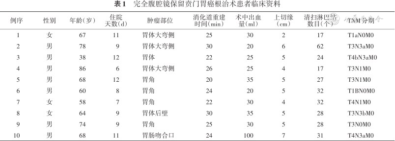 完全腹腔镜保留贲门胃癌根治术患者临床资料