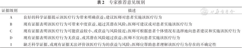 专家推荐意见级别