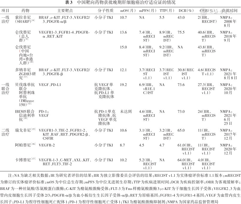 中国靶向药物获批晚期肝细胞癌治疗适应证的情况