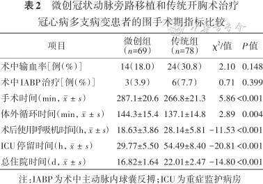 微创冠状动脉旁路移植和传统开胸术治疗冠心病多支病变患者的围手术期指标比较
