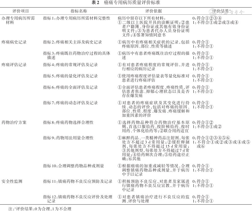 建立门诊癌痛专用病历质量评价方法,并对应用效果进行分析。