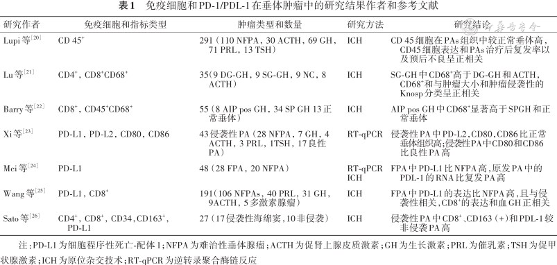 免疫细胞和PD-1/PDL-1在垂体肿瘤中的研究结果作者和参考文献