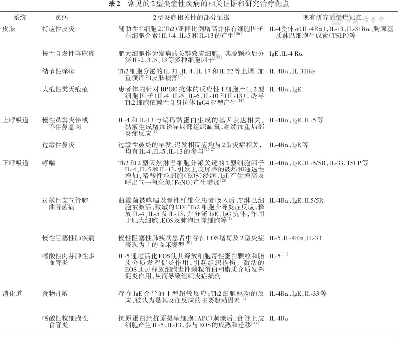 常见的2型炎症性疾病的相关证据和研究治疗靶点