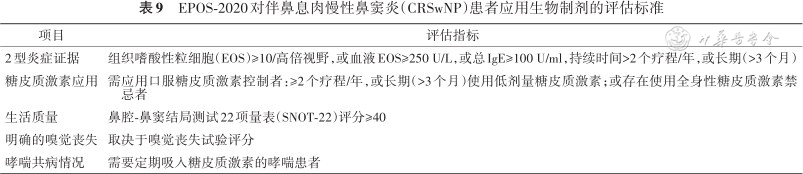 EPOS-2020对伴鼻息肉慢性鼻窦炎(CRSwNP)患者应用生物制剂的评估标准