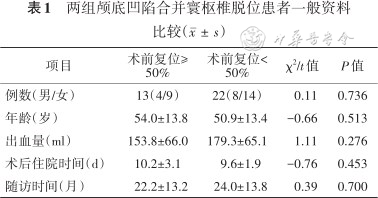 两组颅底凹陷合并寰枢椎脱位患者一般资料比较()