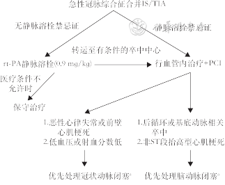 注:IS为缺血性卒中;TIA为短暂性脑缺血发作;rt-PA为重组组织型纤溶酶原激活剂;PCI为经皮冠状动脉介入治疗;a应当由心血管或神经介入医师根据心脑血管的闭塞部位做出决定