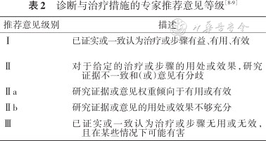 本共识在以往相关诊治共识的基础上,根据动脉粥样硬化性IS/TIA合并CHD危险分层和特定的发病机制制订治疗方案[6, 7]。治疗方案的推荐等级和证据水平参考了心脑血管病的国际指南和常用标准[8, 9](表1、2),直至达成共识。