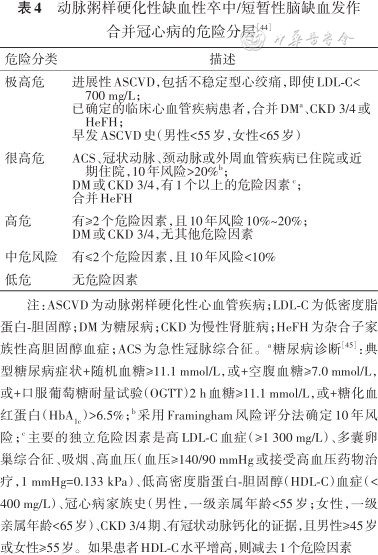 动脉粥样硬化性缺血性卒中/短暂性脑缺血发作合并冠心病的危险分层[44]