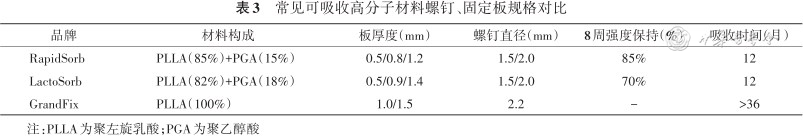 注:PLLA为聚左旋乳酸;PGA为聚乙醇酸