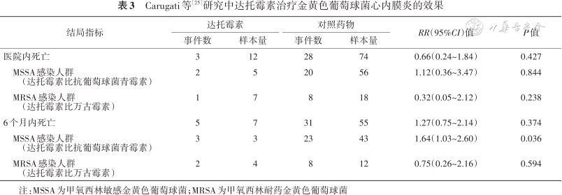 Carugati等[25]研究中达托霉素治疗金黄色葡萄球菌心内膜炎的效果