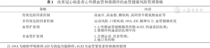 改善冠心病患者心外膜血管和微循环的血管健康风险管理策略