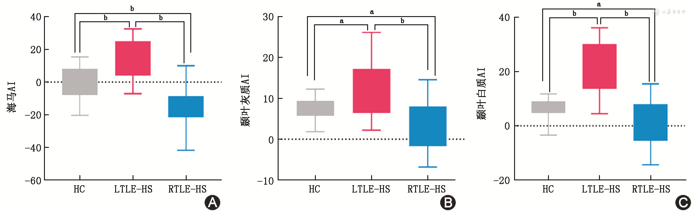 注:AI为不对称指数;HC为对照者;LTLE-HS为左侧颞叶癫痫伴海马硬化;RTLE-HS为右侧颞叶癫痫伴海马硬化