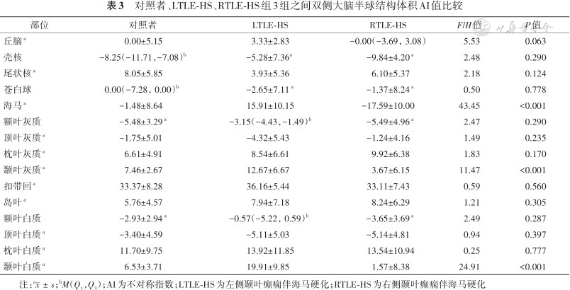 注:a;bM(Q1,Q3);AI为不对称指数;LTLE-HS为左侧颞叶癫痫伴海马硬化;RTLE-HS为右侧颞叶癫痫伴海马硬化