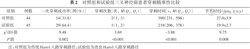 对照组和试验组三叉神经痛患者穿刺精准性比较