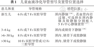 儿童血液净化导管型号及置管位置选择