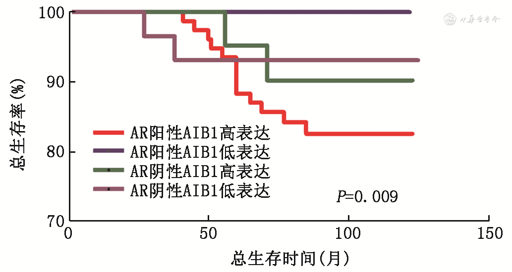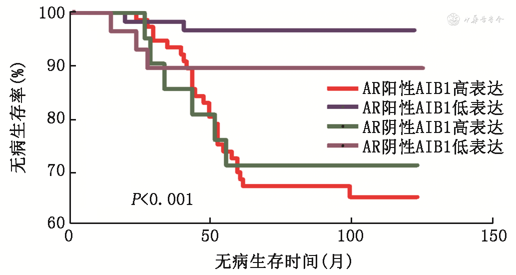 | AR+/AIB1高表达 | 0.004 | 4.204(1.36~12.98) | 0.013 | <0.001 | ||