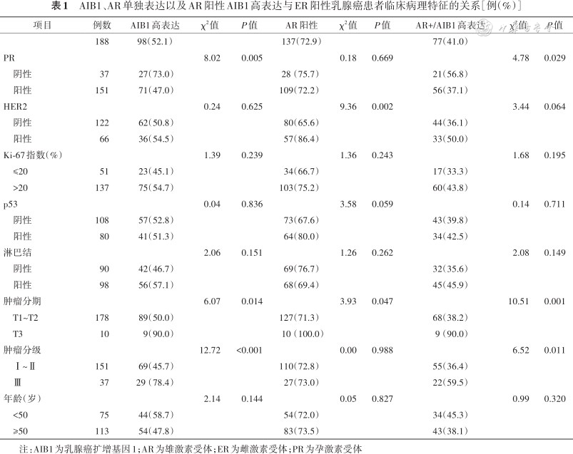 AR与AIB1在雌激素受体阳性乳腺癌中表达的关系