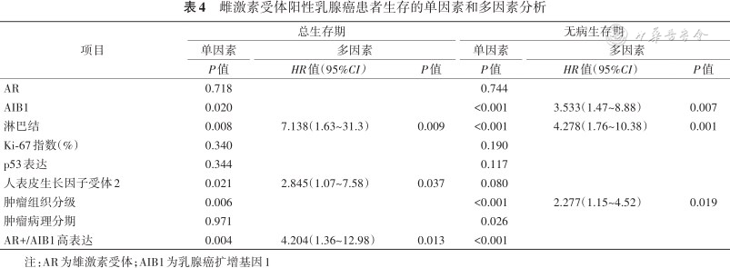 雌激素受体阳性乳腺癌患者生存的单因素和多因素分析