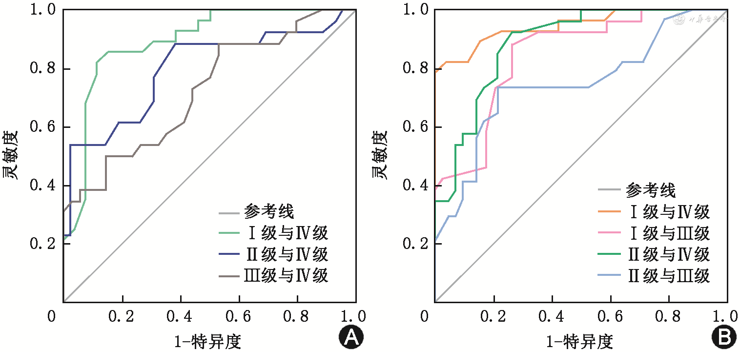 | Ⅰ级与Ⅳ级 | 0.885 | 0.821 | 0.706 | 0.891(0.801~0.981) | <0.001 |
